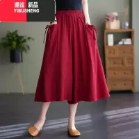 YIBUSHENG棉麻阔腿裤女2024季新款宽松大码纯色裙裤休闲裤七分裤女潮