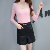 薇侣2017新品皮裙半身裙高腰a字裙女秋冬新款拼接短裙送腰带