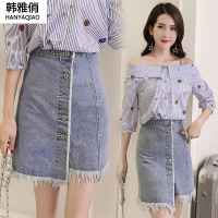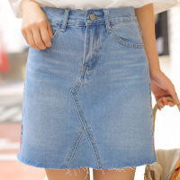 韩雅俏(HANYAQIAO)2018新品高腰牛仔裙女短裙流苏毛边半身裙简约百搭修身包臀A字裙