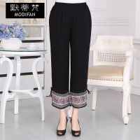默蒂梵中老年大码女裤夏季妈妈装雪纺直筒裤子奶奶松紧印花宽松休闲裤子