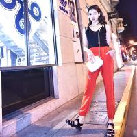 2017夏新款欧美复古纯色休闲百搭高腰运动裤直筒裤九分裤女