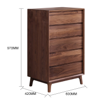 全简北美黑胡桃木极简风格斗柜 家用客厅储物柜 卧室精美收纳柜 五斗柜