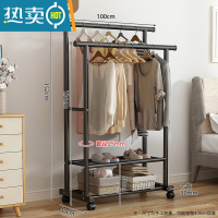 敬平晾衣架落地卧室家用凉衣杆折叠挂衣架室内简易收纳阳台晒衣服架子 1米-特粗双杆-黑色[送万向轮]⭐25管粗 大