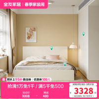温馨奶油风卧室双人床加高衣柜组合套装