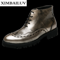迪罗尼卡48码切尔西靴男秋冬季布洛克雕花高帮皮鞋加绒保暖商务大码马丁靴