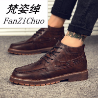休闲皮鞋男鞋马丁靴男靴子秋冬季休闲鞋韩版户外靴男短靴英伦工装靴皮靴防水高帮板鞋七天无理由退货 品质保证
