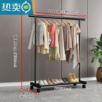 敬平晾衣架落地家用卧室单杆挂衣服架子阳台简易收纳晾晒移动置物衣架 1米黑色❤特粗+滑轮❤25管粗 大
