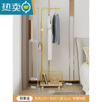 敬平北欧衣帽架简易挂衣架落地卧室家用置物架轻奢室内杆式晾衣服架子 [L型衣帽架+收纳筐]轻奢金(43*31*170晾晒架