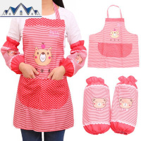 防水做饭围裙套装带袖套厨房防油炒菜围腰韩版时尚女士罩衣两件套 三维工匠