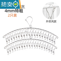 敬平居家家不锈钢晾衣架多夹子袜子架衣架家用挂衣多功能晒晾袜子器 [学生宿舍神器]防风特粗2只 40夹 1个衣夹