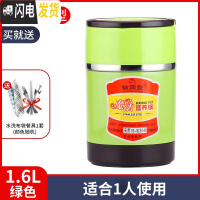 三维工匠304不锈钢真空保温饭盒便携超长12/24小时保温桶多层大容量焖烧壶 款式二:1.6绿色
