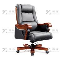 臻远ZY-7573办公中班椅老板椅办公皮椅升降转椅电脑椅 黑牛皮
