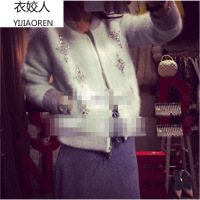 衣姣人(YIJIAOREN) 2018女装重工手工水钻镶嵌针织开衫貂绒毛衣外套加厚