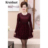 Kruidvat中年女装新款中长款中老年人长袖套头妈妈装蕾丝绣花打底衫连衣裙Z041