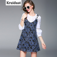 Kruidvat2017春季女装新款镂空绣花灯笼袖套装连衣裙B075图片色