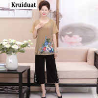 Kruidvat新款中老年女装短袖套装装绣花T恤Z020