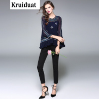 Kruidvat2017春夏民族风元素女装不规则上衣绣花圆领七分袖套头衬衫BT