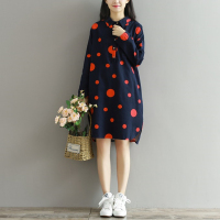 娉语孕妇装秋冬款森系圆点衬衫裙长袖百搭宽松套头不规则中长款连衣裙