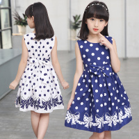 童装女童夏装圆点连衣裙2017新款韩版儿童夏季背心裙吊带裙大童女