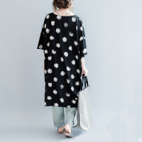 2017大码女装夏季新品韩版时尚圆点中长款胖MM显瘦T恤裙黑色大码均码
