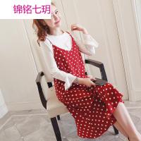 锦铭七玥孕妇春装套装裙2018春季季时尚针织衫圆点吊带裙孕妇连衣裙两件套