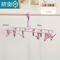 敬平多夹子晾衣架家用晾袜子内衣夹挂钩架子防风多功能可折叠圆盘收纳 北欧紫 12夹 1个