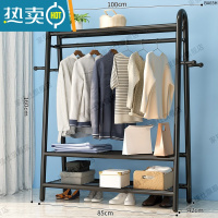 敬平衣帽架挂衣架落地家用卧室简易晾衣架子衣服收纳架阳台宿舍晒衣杆 100cm-黑-上下三网+侧钩