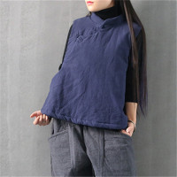 安娅诗马夹冬款复古禅意民族风棉马甲女盘扣立领加棉加厚无袖棉衣背心纯色茶服