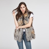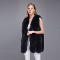 2017新款整皮狐狸毛皮草马甲海宁中长款女背心大雨滴马甲修身外套