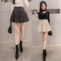 顺崇2018春春新款半身裙百褶裙女短裙高腰A字伞裙pu小皮裙子裤裙