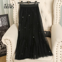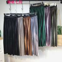 锦铭七玥2018秋春装韩版金丝绒中长款半身裙松紧腰显瘦风琴百褶裙