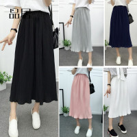 韩版2018夏季高腰雪纺半身裙女中长款仙女裙a字中长裙纯色百褶裙