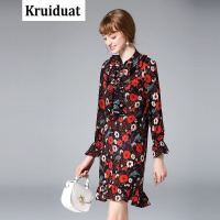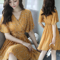 免费试穿 春季新款时髦荷叶边大春季田园淑女宫廷女神范连衣裙新款春夏装长袖超仙气雪纺小碎花连衣裙女气质收腰a字裙子