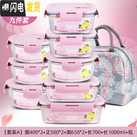 三维工匠上班族玻璃饭盒微波炉加热专用保鲜保温分隔型便当带盖碗九件套装 [套装A]北欧粉9件套