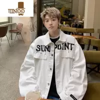 YANXU新款刺绣复古白色牛仔外套男士韩版潮流大码机车夹克休闲衣服