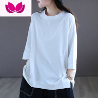 七斓七分袖紫色t恤女时尚贴标短袖打底衫休闲宽松大码女装上衣