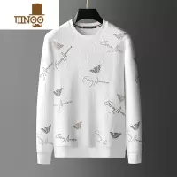 YANXU弹力菠萝纹 欧洲站白色圆领卫衣男潮牌长袖痞帅t恤男士修身