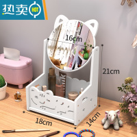 敬平化妆镜子台式梳妆镜子卡通镜折叠便携组合收纳简约随身宿舍桌面女 圆镜/一层猫咪便携式用镜