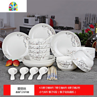 创意6人碗碟套装盘子碗具组合家用饭碗面碗中式餐具陶瓷碗盘碗筷 FENGHOU 春暖花开26头面碗款