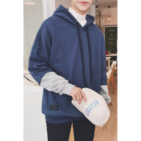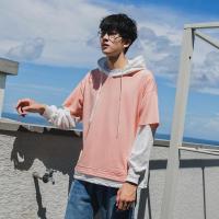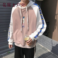 港风秋男士青少年韩版潮人假两件套卫衣连帽宽松日系套头衫外套潮