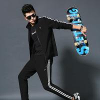 卫衣男秋装外套两件套弹力休闲运动套装男春秋长袖运动服装青年装黑色(上衣+裤子)