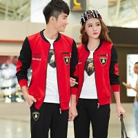 2017女装全棉秋季大码情侣运动套装男士运动服青少年卫衣三件套39红色男款L建议体重(110-128斤)质量保证