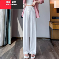 YIBUSHENG加大码冰丝阔腿裤女季薄款窄版直筒裤高腰垂感防晒小个子休闲裤