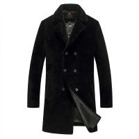 秋冬新款男士羊剪绒大衣不满意包退款羊毛定制长款大衣黑色