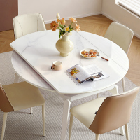 全友家居岩板折叠吃饭餐桌椅家用小户型钢化玻璃圆桌伸缩