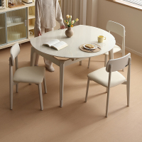 全友家居现代简约岩板餐桌橡胶木实木框架多功能折叠伸缩餐桌软包餐椅餐桌椅