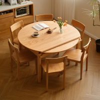 全友家居北欧原木风实木餐桌客厅可变圆折叠饭桌红橡木餐桌