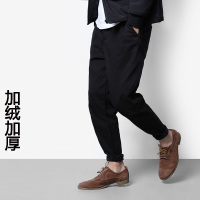 冬季抓绒长裤韩版修身黑色小脚裤哈伦裤潮男裤子