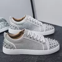新款潮鞋2025欧美时尚银色面低帮钉钉休闲板鞋系带浅口鞋铆钉男鞋