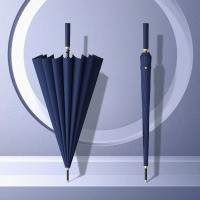嘉创优品 长柄直杆伞 家用大号加固结实抗风暴雨专用伞16骨 藏青色